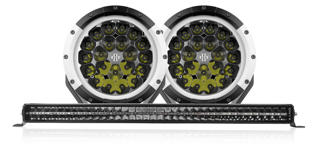 JB-9 (PAIR) INCLUDING WIRING HARNESS + XEN DOUBLE ROW + SINGLE ROW LIGHT BAR BUNDLE