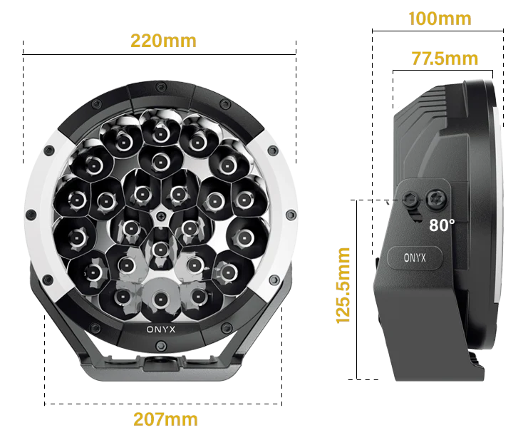 The XEN-9 GEN II is a 9" driving light that is designed with a 7.5mm thick stainless mounting bracket, which includes a rubber dampener to assist with vibration, ensuring a stable and secure mounting. The lights are also CISPR 25 Class 3 certified, producing zero radio or communication interference, ensuring uninterrupted communication while on the road.