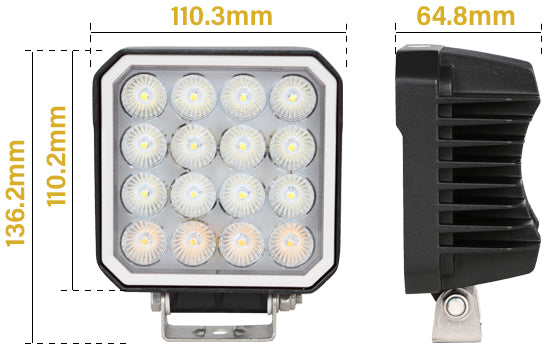 Illuminate your workspace with unparalleled clarity using our robust WL-S161-D Square Work Light, featuring advanced flood beam technology. Equipped with twelve clear and four amber high-performance OSRAM LEDs, this work light delivers exceptional brightness and a wide light spread, making it perfect for both professional and DIY projects.