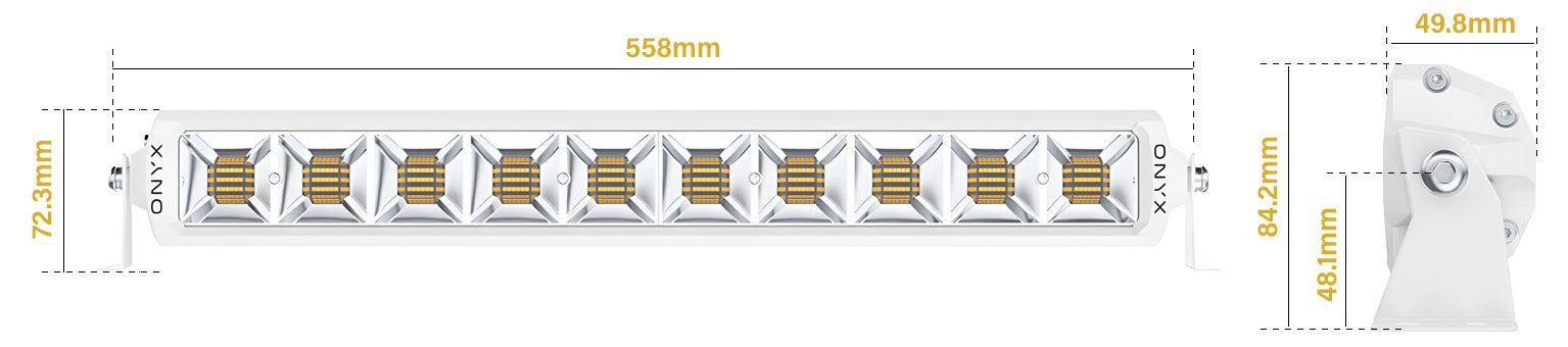 ONYX Lights XEN-BL22 Marine Lighting | 4 x 22" Dual-Colour LED Light Bars | Dimensions