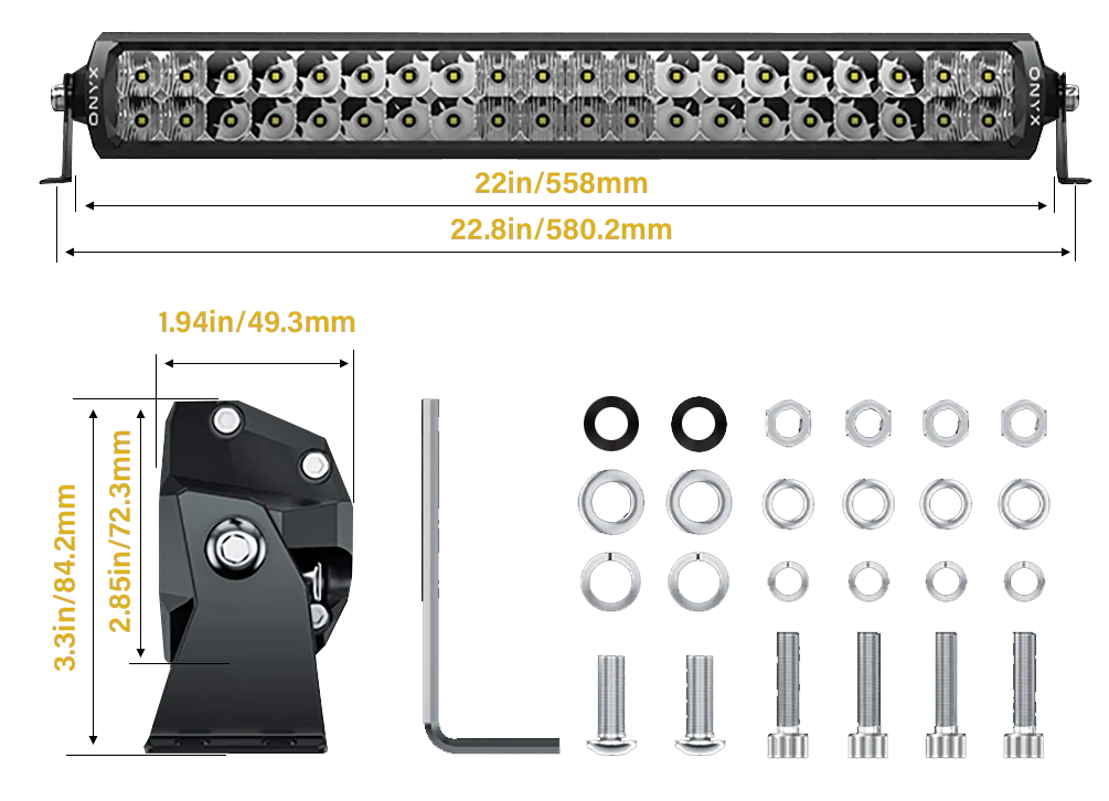 The XEN-D22 Light Bars come with a Fast Fit Wiring Harness for easy, plug and play installation, including H4 and HB3 high beam adaptors. Custom light covers are also available for a personalized touch.